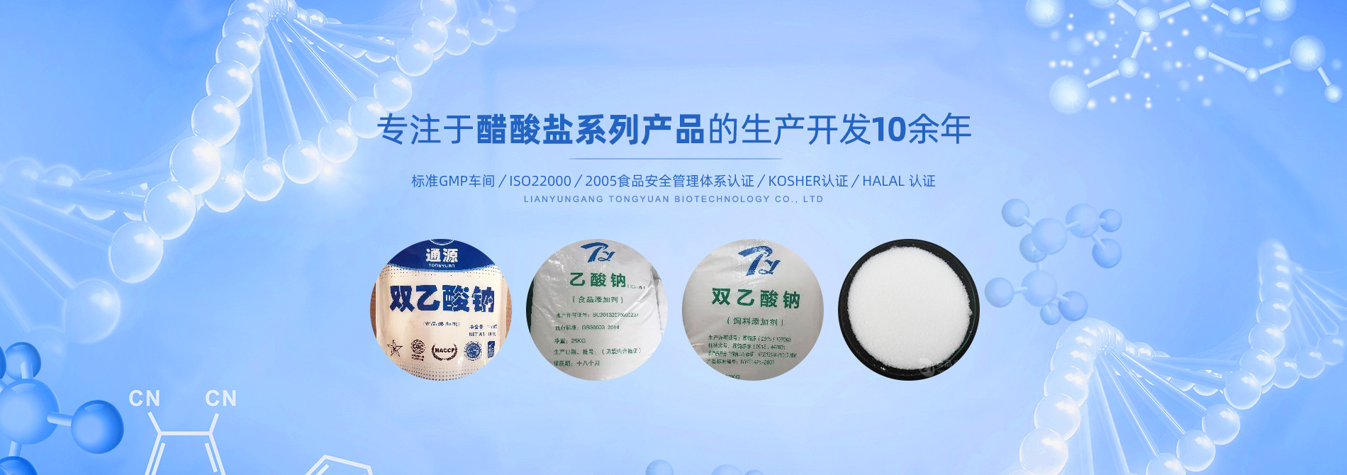 連云港市通源生物科技有限公司 是生產(chǎn)雙乙酸鈉、無水醋酸鈉、三水醋酸鈉、醋酸鉀、乙酸鈉、丙酸鈉、丙酸鈣和氯化鉀等系類醋酸鹽產(chǎn)品的專業(yè)制造商。公司專注于醋酸鹽系列產(chǎn)品的生產(chǎn)開發(fā)10余年,是國內(nèi)專業(yè)醋酸酸鹽產(chǎn)品生產(chǎn)基地。 目前,我們已和全球30多個國家和地區(qū)建立長期的業(yè)務(wù)合作關(guān)系,是中國較大的雙乙酸鈉生產(chǎn)商和出口商之一。作為中國食品添加劑和配料協(xié)會理事單位,通源公司已建成標(biāo)準GMP車間5000余平方米,通過了ISO22000:2005食品安全管理體系認證、KOSHER認證、HALAL 認證等,這些都是我們提供高質(zhì)量產(chǎn)品和優(yōu)良服務(wù)的前提和確保。 生產(chǎn)出色產(chǎn)品,提供優(yōu)良服務(wù),滿足顧客需要,是我們努力的目標(biāo)。愿和我們的朋友們攜手,共...
